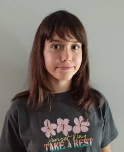 Tenho 15 anos e vivo no Cadaval. Sou locutora da rádio miúdos desde 2023, depois de ter passado pela rádio da minha escola. Nos meus tempos livres toco flauta transversal e jogo voleibol. Também gosto muito de jogar vídeo jogos e desenhar, além de ver anime.