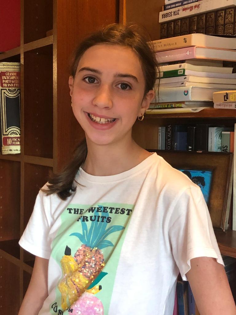 Sou extrovertida, alegre, espontânea, decidida, imaginativa, e de sorriso e improviso fácil. Tenho 13 anos, sou de Lisboa e toco violino, faço teatro, ballet, surf e skate. A minha maior dificuldade é conseguir estar calada. Comunicar é a minha grande paixão e o meu sonho é poder actuar na Broadway, um dia.