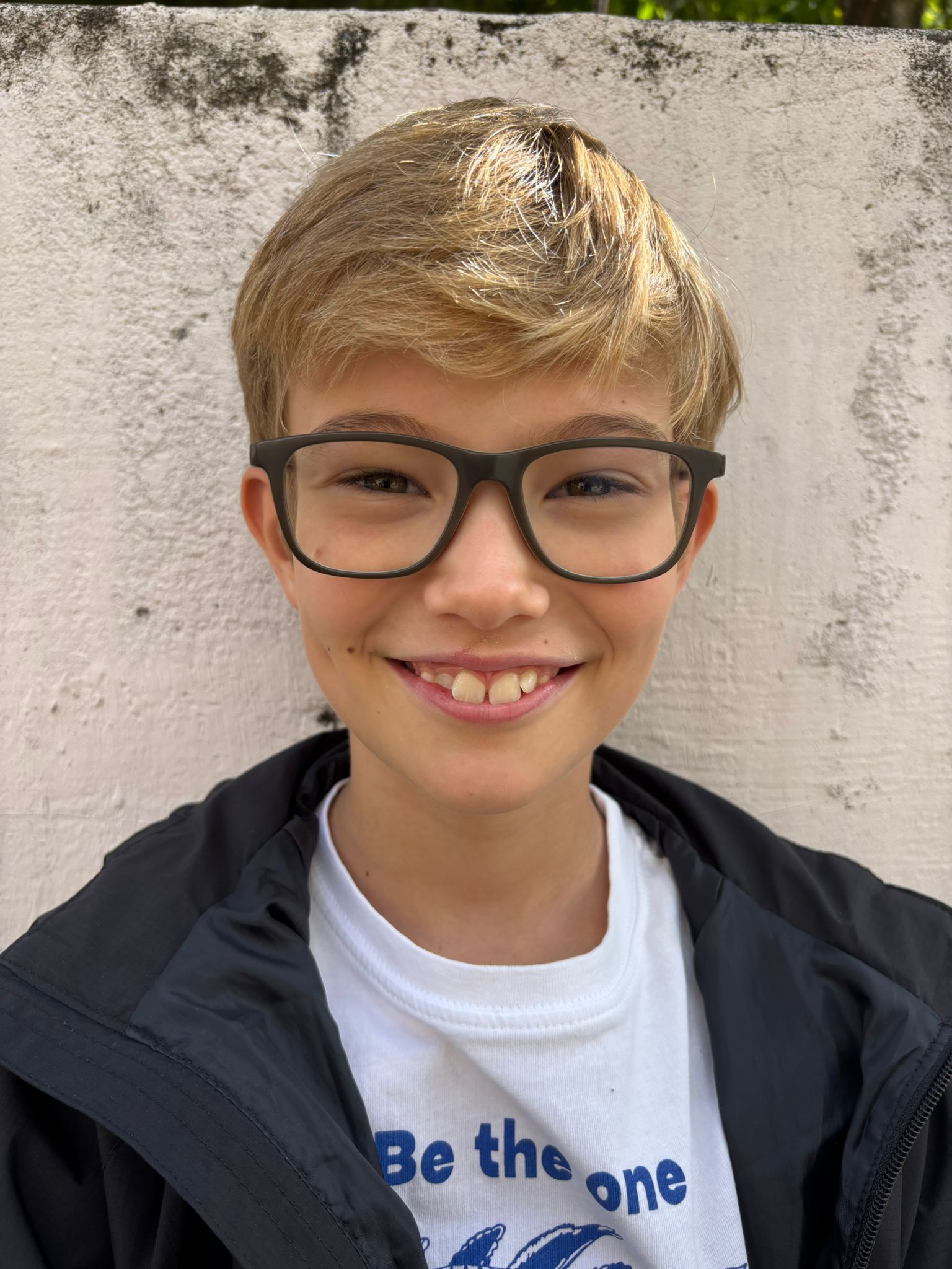 Tenho 11 anos, estou no 6.º ano, e vivo no Bombarral. Sonho ser professor e jornalista: sou apaixonado por rádio, adoro comunicar e partilhar ideias. Também gosto de arbitragem e do espírito de equipa, que eles traz.